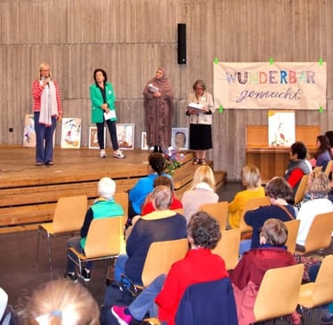 Bei der Ankunft wurden wir herzlich aufgenommen und das einführende vielfältige Programm war sehr begeisternd und rührend zugleich. Durch wenige Worte wurde ein Raum geschaffen, wo sich Frauen wohl fühlten. Sie sangen und sprachen Gebete. Dadurch spürte ich eine Art Verbundenheit zu den Vortragenden, aber auch zu allen Zuhörenden. Ich habe das Gefühl gehabt, dass jede Frau mit einem offenen Herz kam.