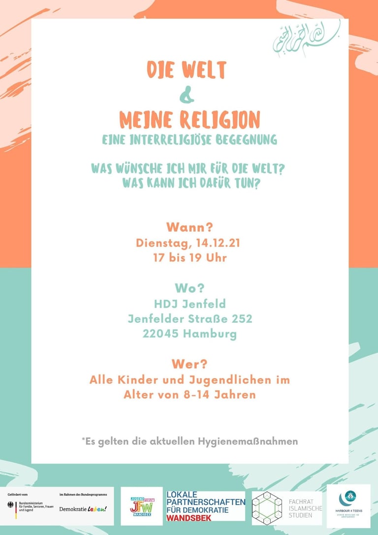 Harbour 4 Teens veranstaltete am 14. Dezember eine interreligiöse Begegnung im Haus der Jugend Jenfeld. Unter dem Titel "Die Welt & meine Religion" waren Kinder und Jugendliche aus dem Stadtteil eingeladen, mit jüdischen, christlichen und muslimischen Religionsvertreter*innen zu folgenden Fragen ins Gespräch zu kommen: Was wünsche ich mir für die Welt? Was kann ich dafür tun?