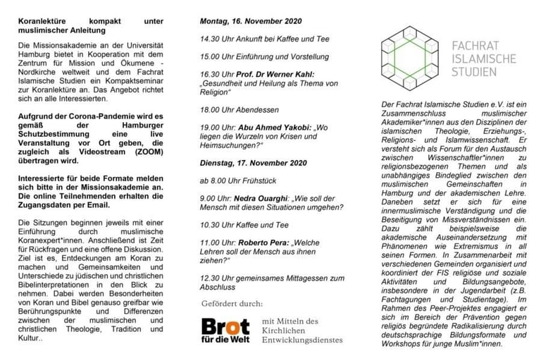Interreligiöse Koranlektüre am 16. & 17.11.