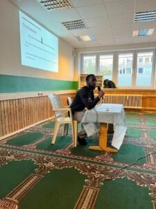 Am 16.04.22 öffnete die Jugendgruppe der Gemeinde die Türen der Sabikun-Moschee und empfing die Besucher*innen in ihren Räumlichkeiten. Nach einer kurzen Begrüßung und der Vorstellung der Jugendgruppe eröffnete ein Jugendlicher die Veranstaltung traditionell mit einer kurzen Koranrezitation.