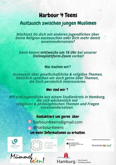 Das Angebot versteht sich als Forum für muslimische Jugendliche im Hamburger Sozialraum Mümmelmannsberg. Angeleitet und moderiert durch junge Expert*innen aus dem Peer-Projekt erhalten Jugendliche die Möglichkeit, über Themen in einen Austausch zu kommen, die eng im Zusammenhang mit ihrer Identitätsfindung stehen. Hierzu gehört im Rahmen des Projektes insbesondere die Auseinandersetzung mit Fragen aus den Themenfeldern Religion, Religiosität und Gesellschaft. Dabei soll das Angebot die spezifischen Bedarfe und Fragen der Jugendlichen in diesem Bereich adäquat auffangen und einen Raum zur Reflexion bieten. Wir verstehen unser Angebot als komplementären Baustein der Jugendarbeit mit speziellem Fokus auf muslimische Jugendliche.