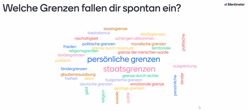 Die Veranstaltung begann mit einem offenen Einstieg, worin die rund 30 Teilnehmenden ihre Assoziationen zur Frage „Wo gibt es Grenzen?“ mittels Mentimeter miteinander teilten.
